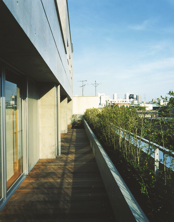 住居は上層階にあっても、地上にいるような安心感と心地よさを感じるようにテラスに植栽を配しています。