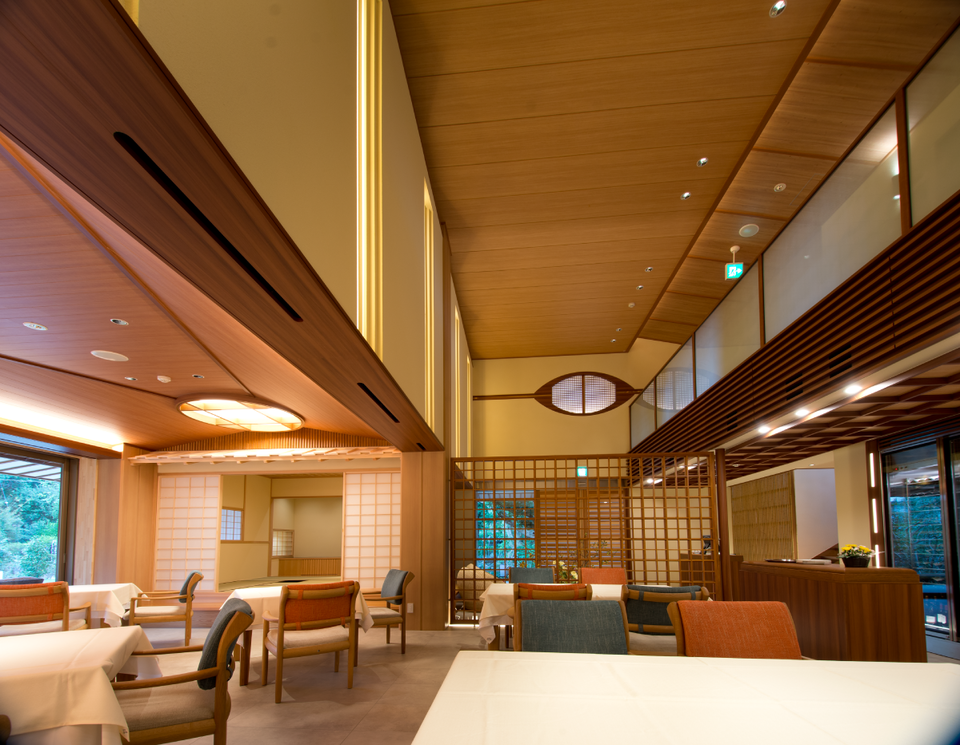 ここ坐漁荘の敷地は、浮山温泉という彩り豊かな自然の中にあります。この自然の中で人々がゆったりとした心地よい時間を取り戻す環境を旅館とともにレストランで創発します。