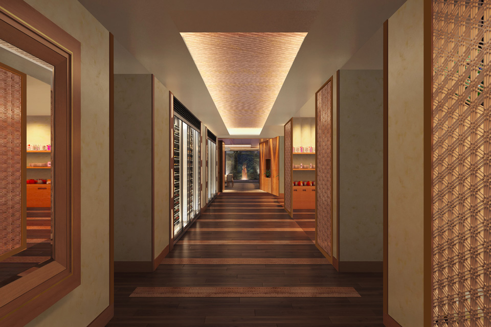 ロビーラウンジは、ライブラリーコーナーや暖炉を配し、アート感覚を融合させた心地よさを感じるゆとりある空間としています。自然豊かな場所にあって、より“自然の時間”を体感できる環境を提供するものです。