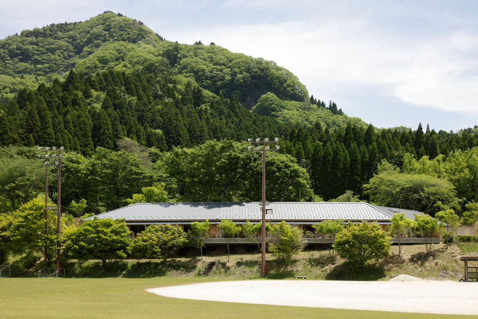 今回は、この施設へ訪れる社員等の保養所として計画されました。敷地は社宅とも隣接しており、麒麟の首のような細長い線上のタイトな敷地形状で、社宅同様に阿蘇五岳が見渡せるように、建築をへの字型に曲げた配置としています。ゲストハウス「そぞろ庵」は、人々にとって阿蘇のもつ歴史、特別な自然の音、時間、水をテーマにしています。