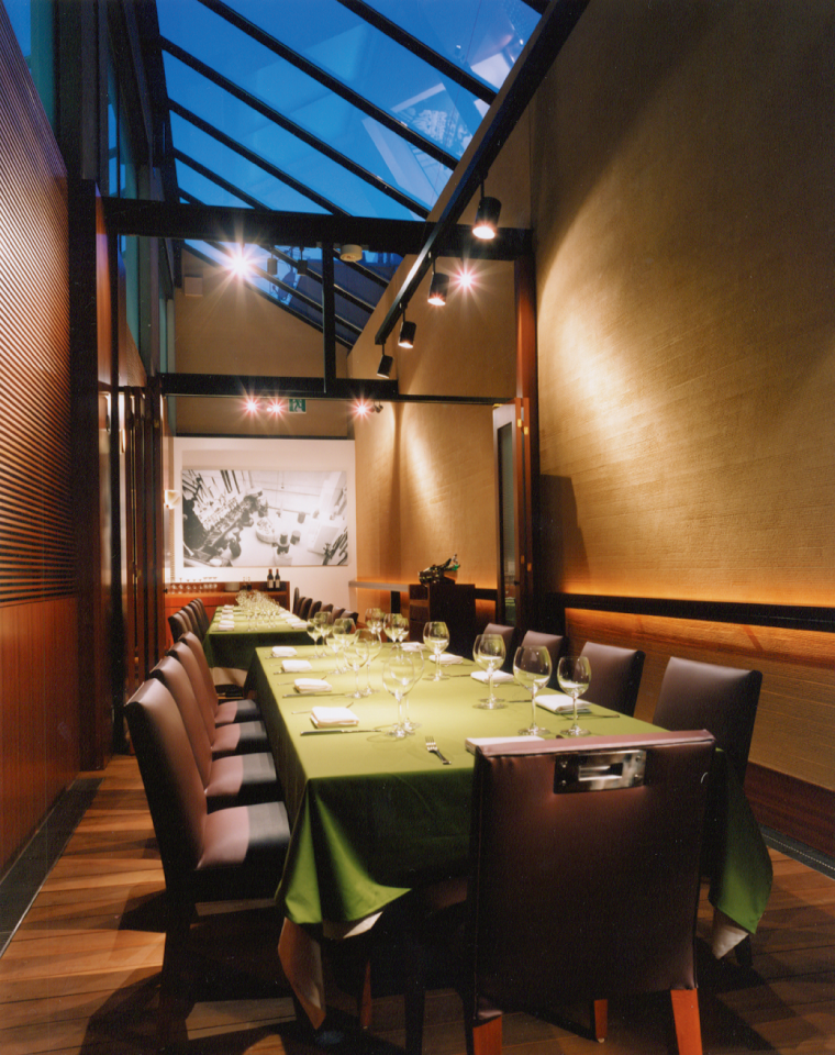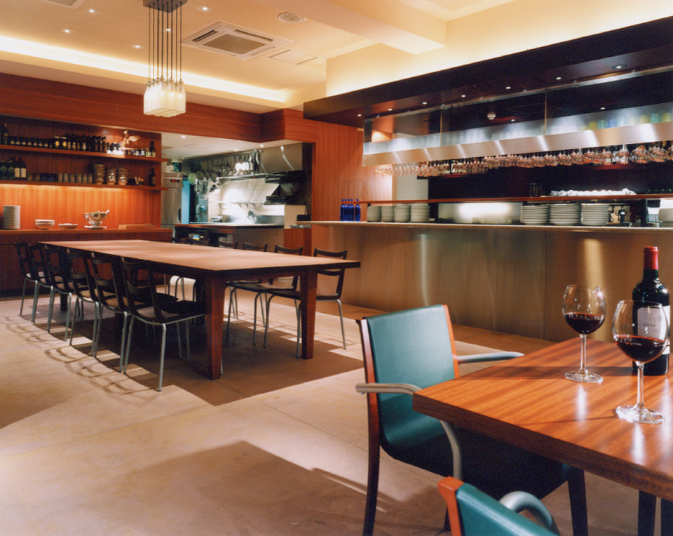 1階のスペースにはシェフの希望で、厨房がオープンキッチンになっています。お客さんから見て、シェフが何をどんなふうに創っているかは興味深いものです。